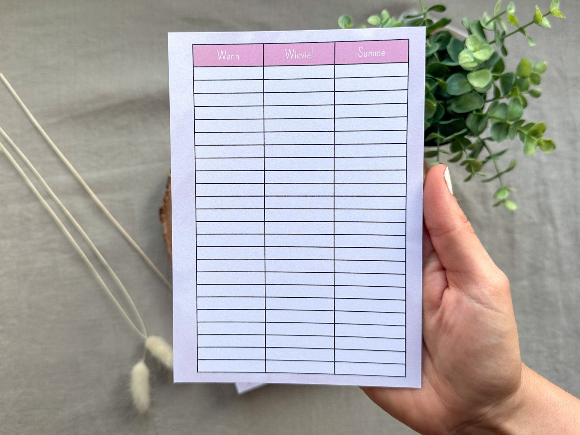Du hast auf der Rückseite der Sparchallenge gleich die Möglichkeit die gesparten Beträge einzutragen, und siehst so auf einem Blick, was du schon gespart hast.