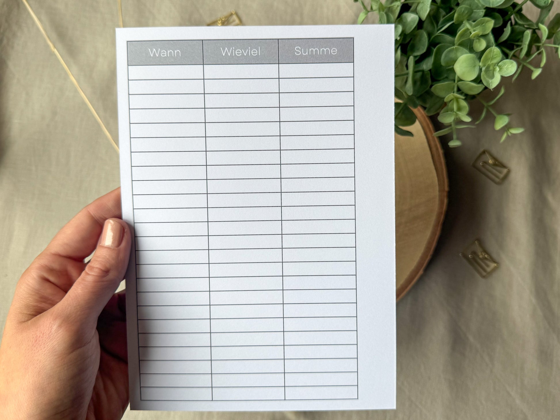 Du hast auf der Rückseite der Sparchallenge gleich die Möglichkeit die gesparten Beträge einzutragen, und siehst so auf einem Blick, was du schon gespart hast.